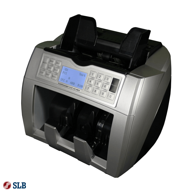 Geldscheinzähler CCE 342 NEOGemischtwertzähler für bis zu 12 Währungen, EZB getestet umfangreiche Ausstattung, 1.500 Noten/Min., BATCH STOPP, ADD, Update über SD Karte.