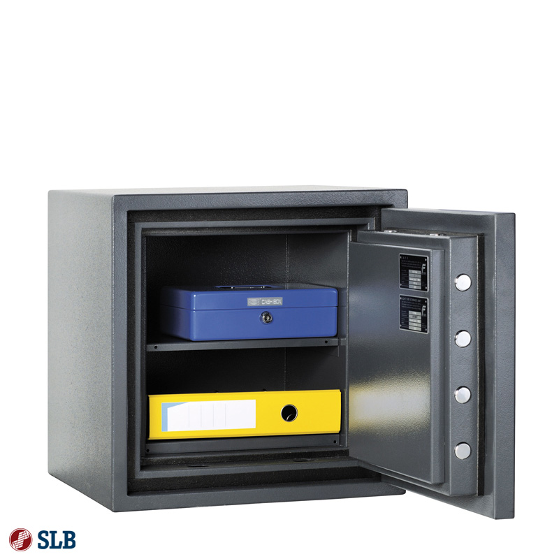 Der Tresor Bologna bietet Ihnen jedoch Schutz gegen beide Gefahren, aber zum Preis von einem! Die Einbruchsicherheit ist zertifiziert nach EN 1143-1 Widerstandsgrad I, die Feuersicherheit ist ein LFS 60P-Zertifikat (ECB-S) nach EN 15659. Dies bedeutet, dass die Temperatur 60 Minuten lang unter 170 ° C bleibt, damit Ihre wichtigen Unterlagen erhalten bleiben.